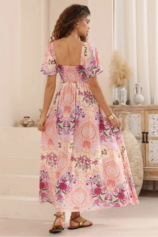 Tropical Mosaic Maxi Dress - Coconut Husk