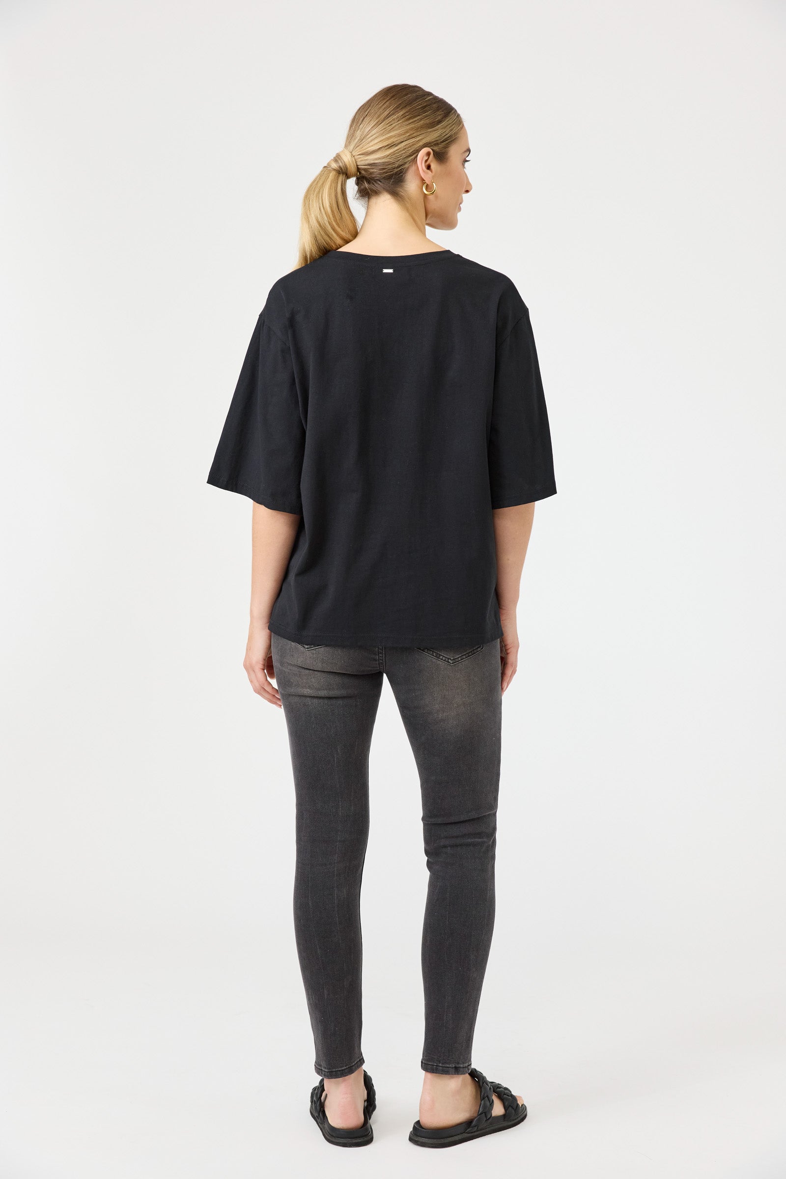 An elevated take on the everyday tee. Crafted from 100% cotton for softness and breathability. Features a round neckline, drop shoulders, and elbow-length sleeves. Designed in a boxy silhouette with a straight hem and small side splits for ease of movement.