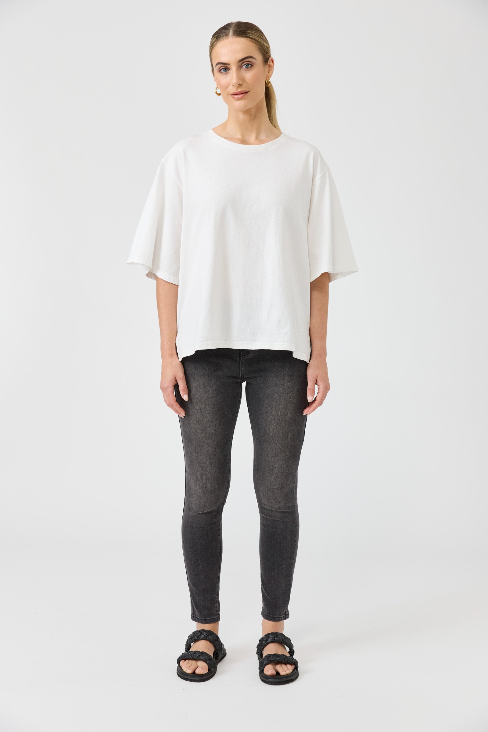 An elevated take on the everyday tee. Crafted from 100% cotton for softness and breathability. Features a round neckline, drop shoulders, and elbow-length sleeves. Designed in a boxy silhouette with a straight hem and small side splits for ease of movement.