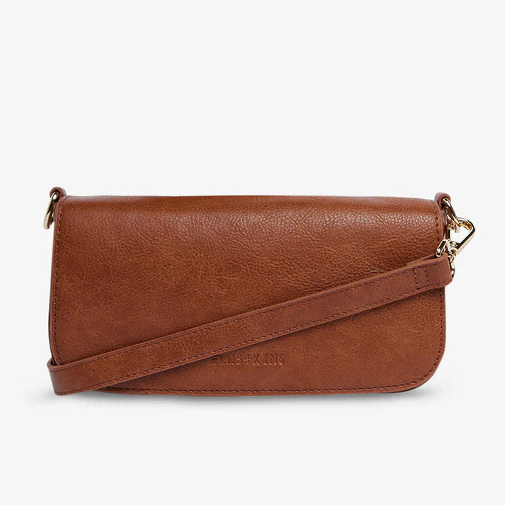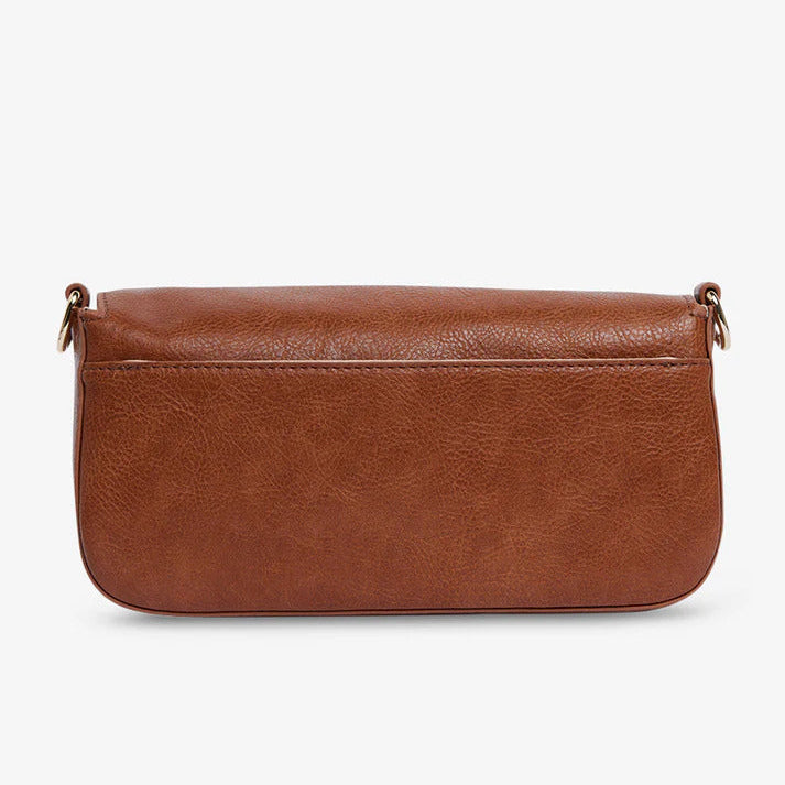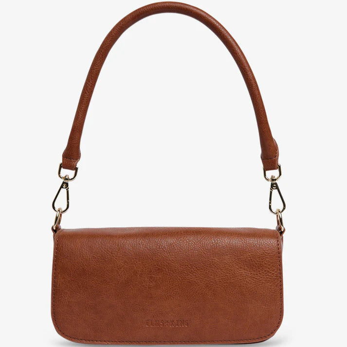 The Elms+King Calabria Baguette is made from premium 100% recycled polyurethane and features a bonded polyurethane interior. The Calabria has two strap options, a short shoulder strap and an adjustable/removable crossbody strap. The full-length top flap has a hidden magnetic closure, which opens to reveal an ample centre compartment, and the bag features an open top slip pocket at the rear of the bag.