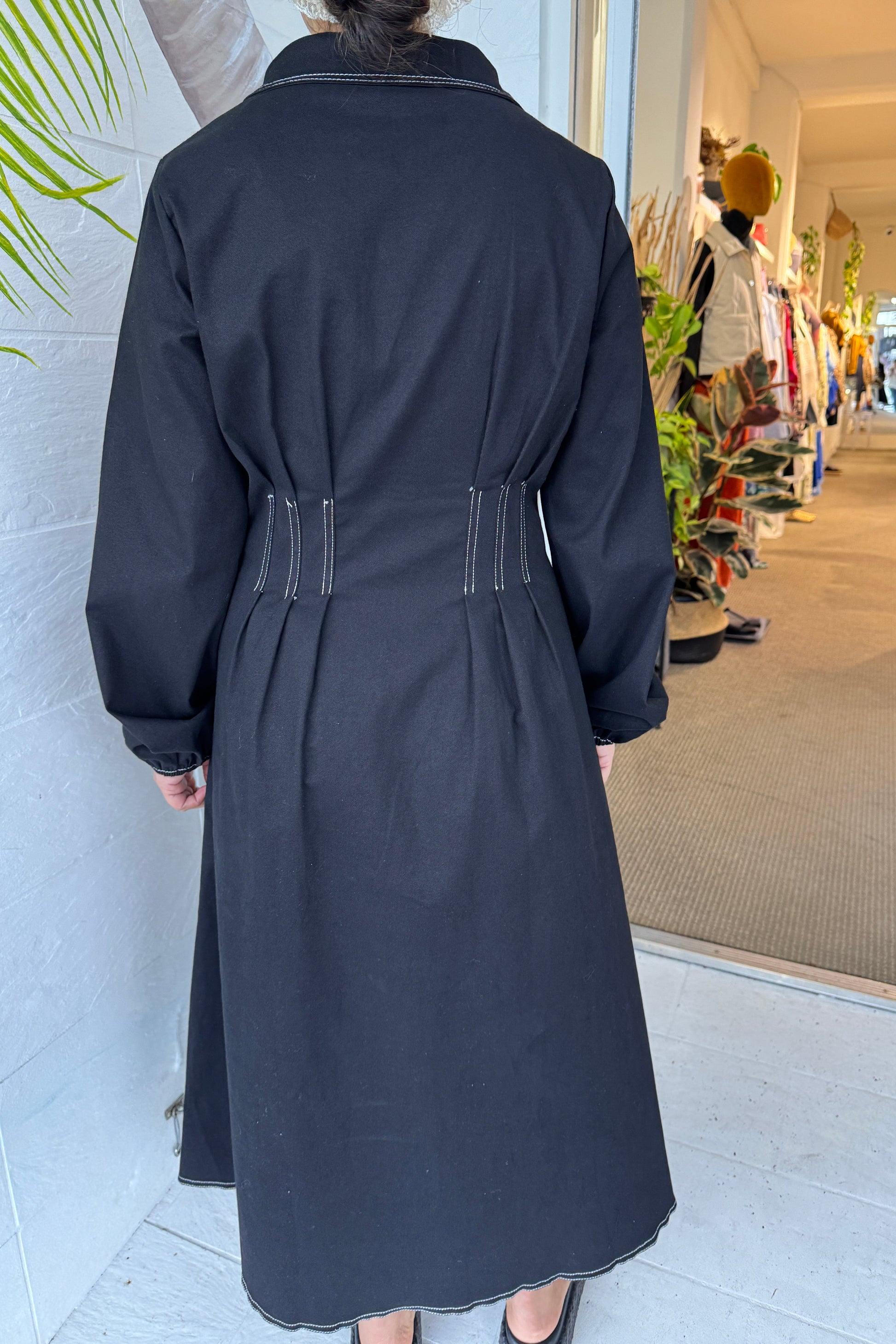 The Eve midi dress is sure to be the perfect addition to your wardrobe! It features a button down front, invisible side zip, functional pockets and white contrast stitching. The fitted bodice provides an extra touch of detailing that will make you look and feel beautiful.