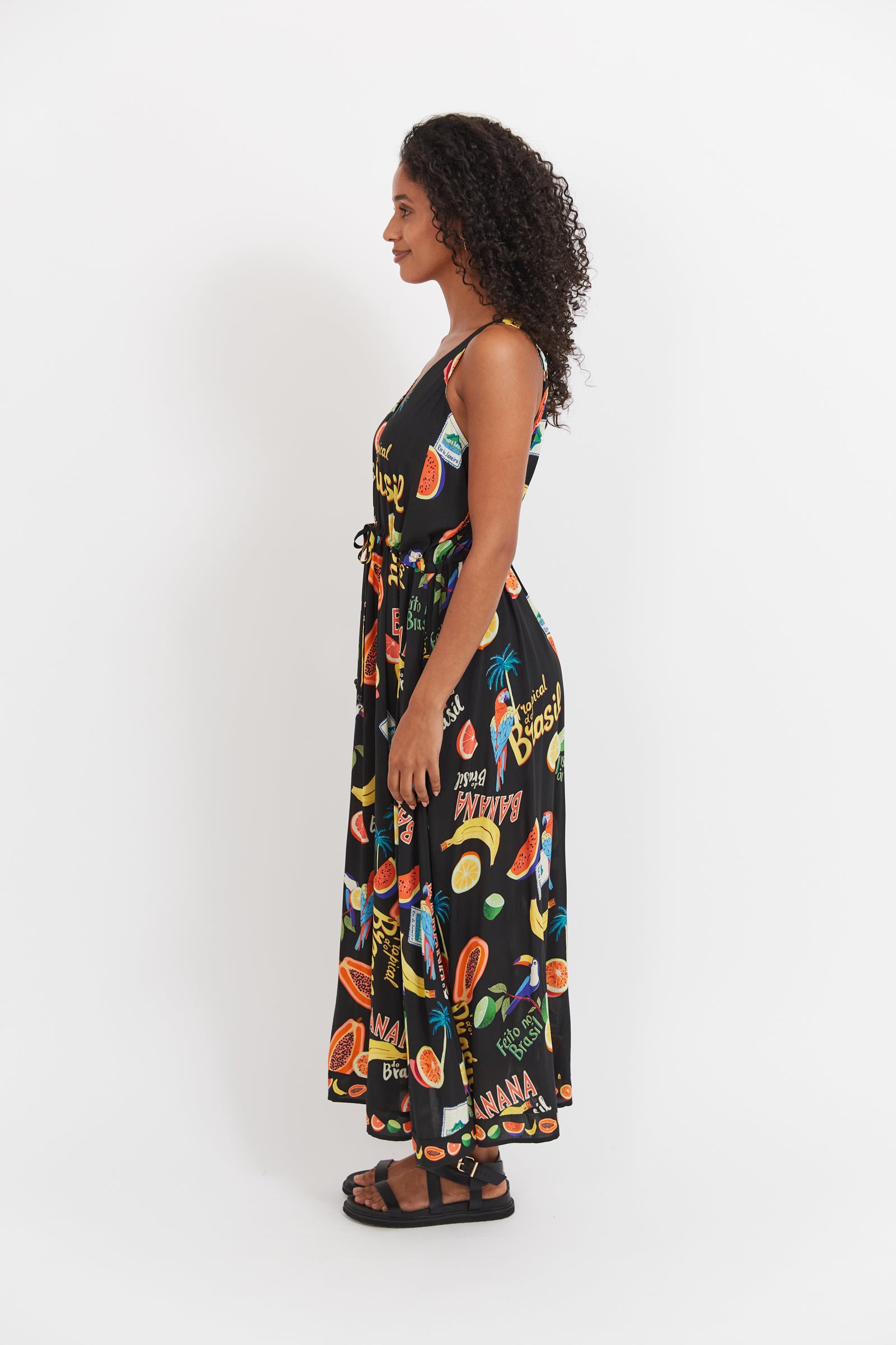 This easy-fitting maxi dress features adjustable shoulder straps, a relaxed V neckline, and an encased self-fabric drawstring to define the waist. The lightweight drape is finished with internal pockets and a bold contrast border panel at the hem for a standout look.