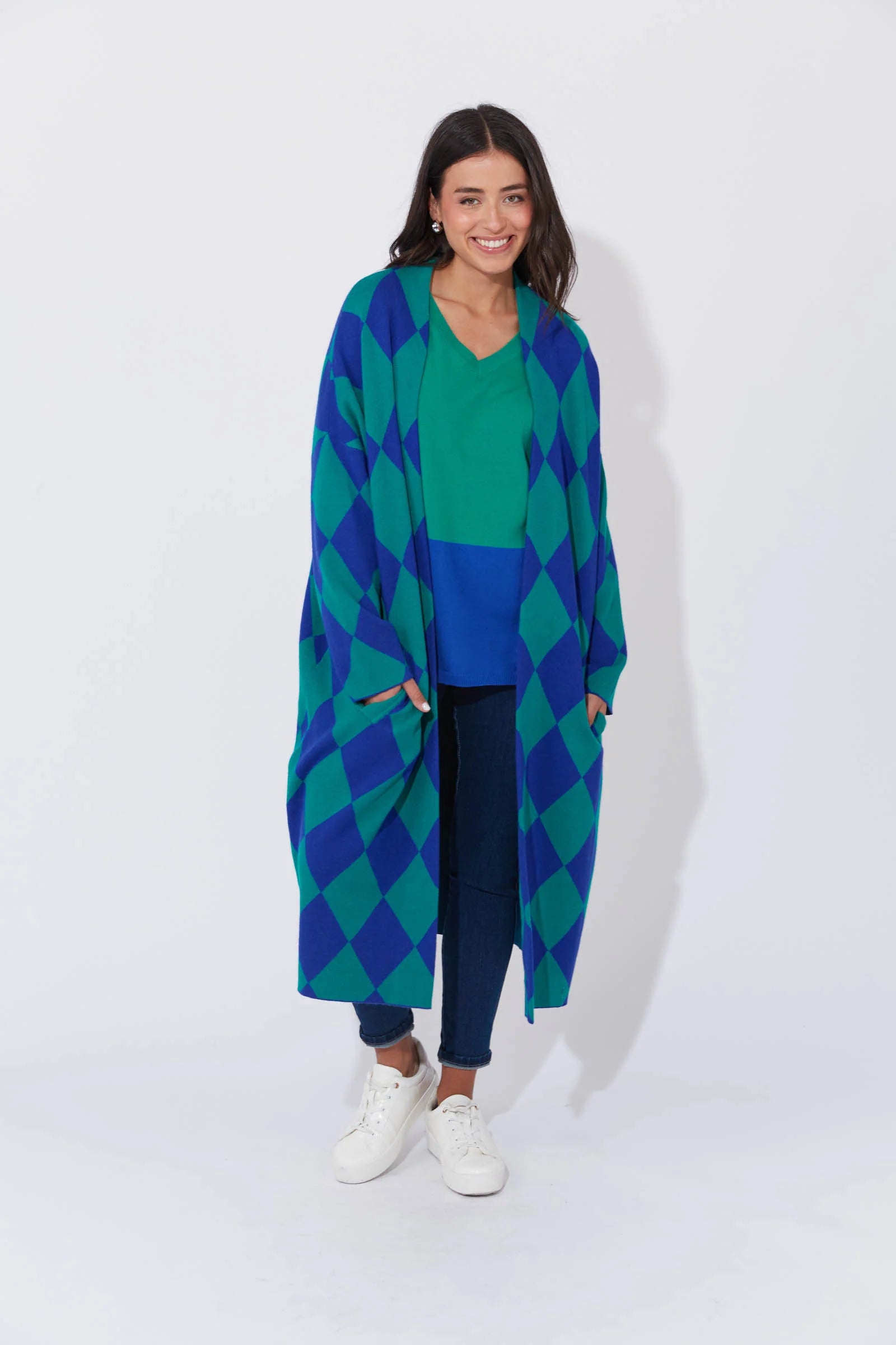 Instantly refresh your knitwear collection with the eye-catching Casablanca Cardigan. With a flowing longline profile and an open edge-to-edge design, this cardigan boasts bold monochromatic checks that will bring a fun, energetic vibe to your wardrobe this season. Cosy and soft, it's guaranteed to brighten your mood all season long! Pair it with a neutral outfit to let this cardigan take centre stage.