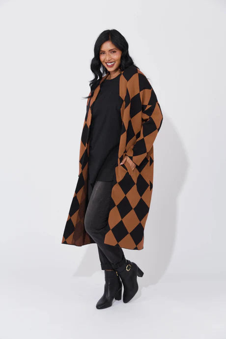Instantly refresh your knitwear collection with the eye-catching Casablanca Cardigan. With a flowing longline profile and an open edge-to-edge design, this cardigan boasts bold monochromatic checks that will bring a fun, energetic vibe to your wardrobe this season. Cosy and soft, it's guaranteed to brighten your mood all season long! Pair it with a neutral outfit to let this cardigan take centre stage.